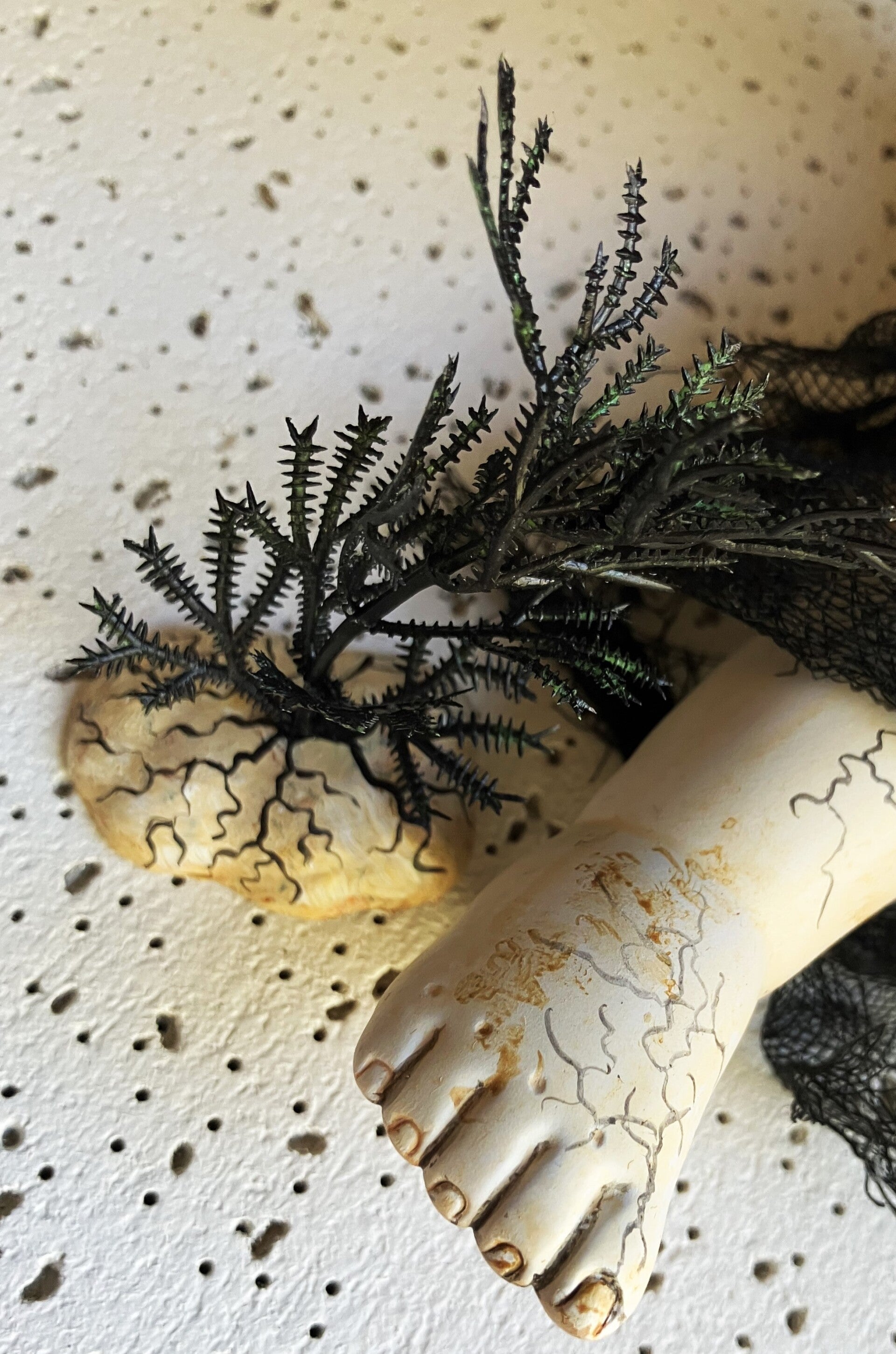 Repainted porcelain doll with changed eyes and a small fungal accessory. (Grimdoer Dolls' take on "The Last of Us".